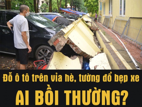 Đỗ ô tô trên vỉa hè, tường đè bẹp thì ai bồi thường?